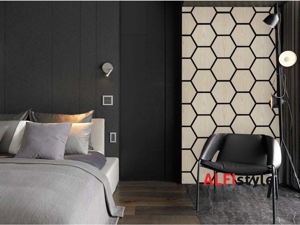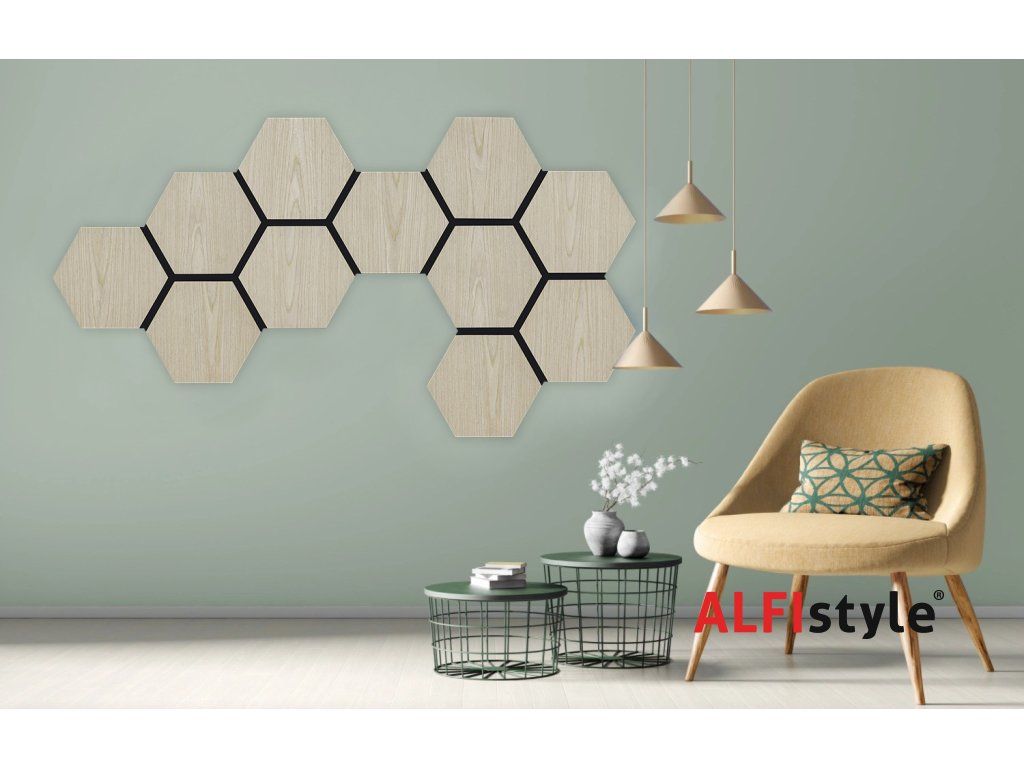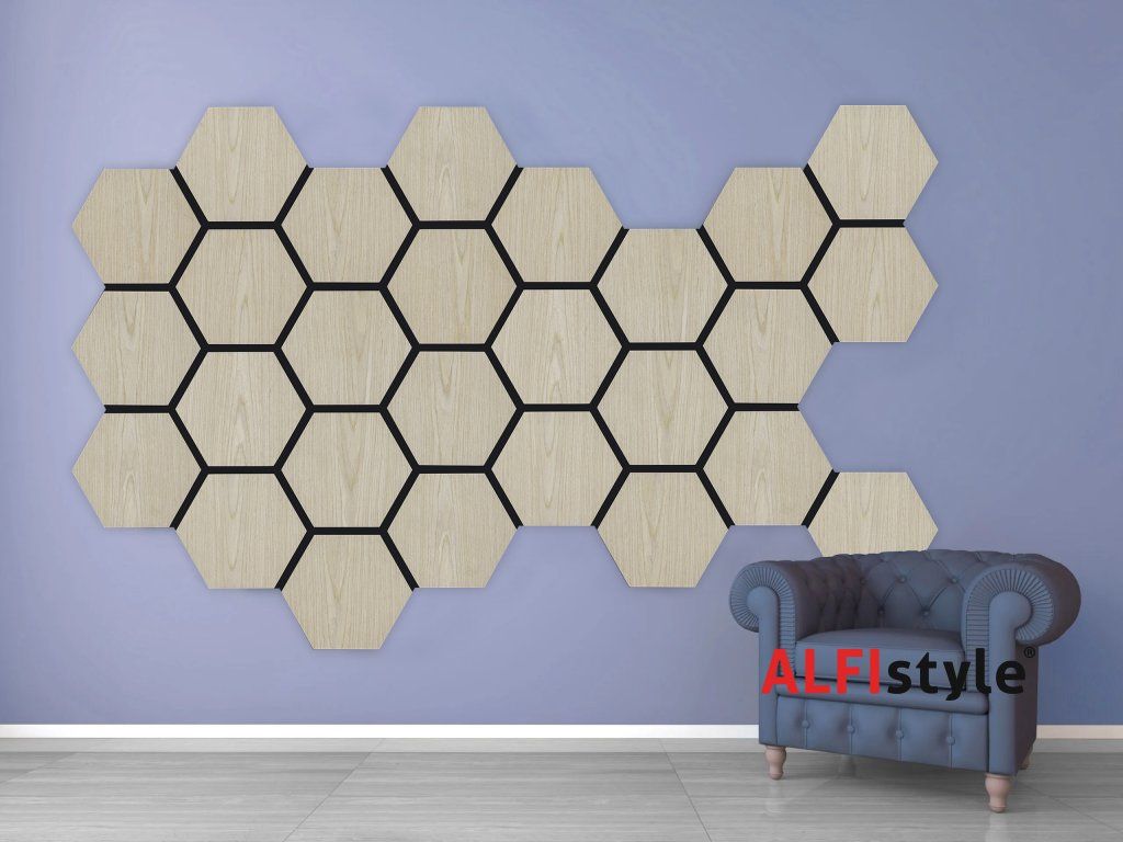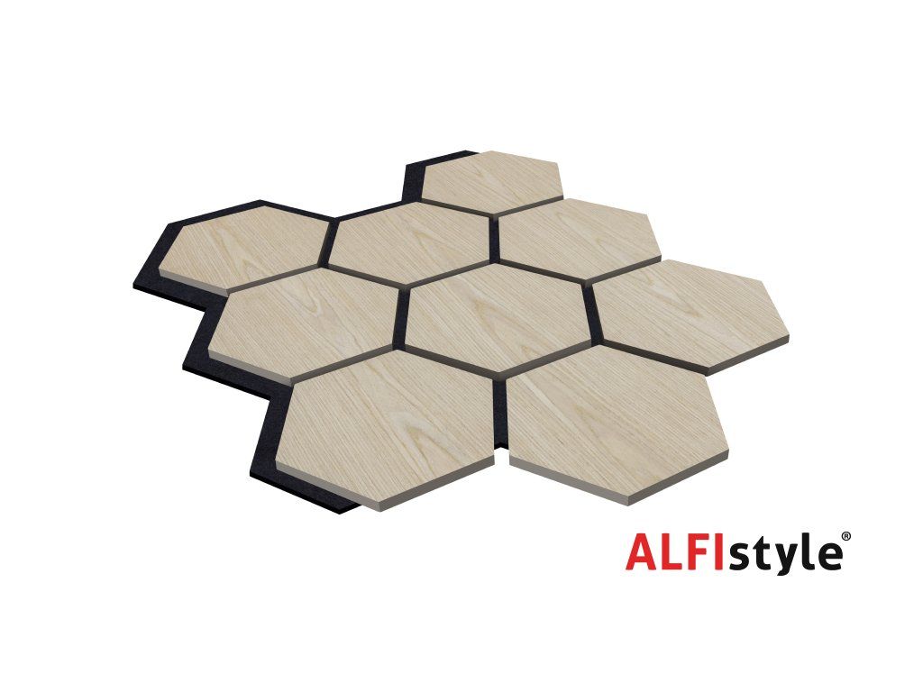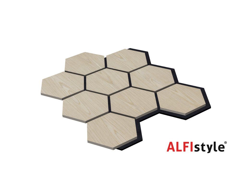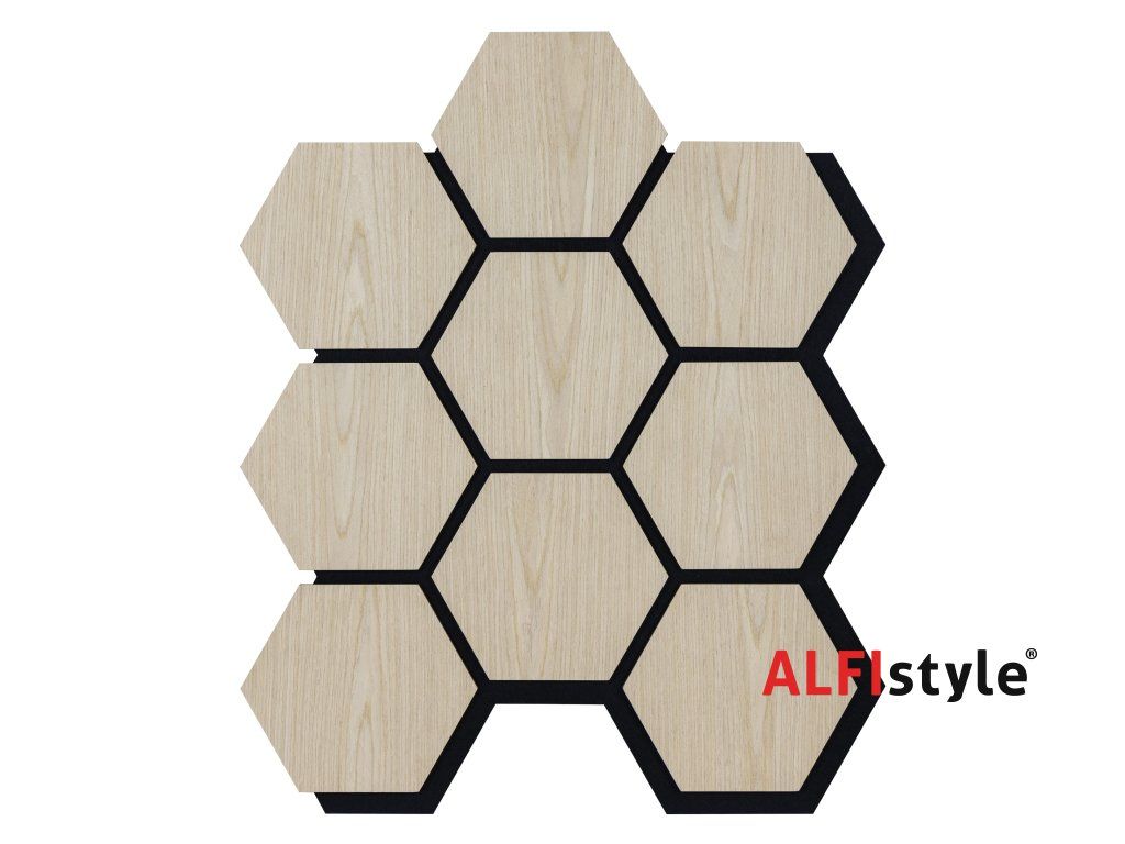 Akustikpaneel mit Holzfurnier – Sechseck – Eiche hell | 79,8 × 66 cm | ALFIstyle.cz