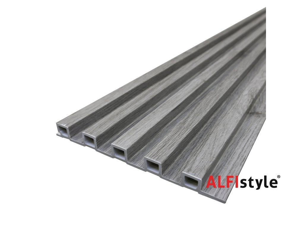 WPC Wandpaneel – Erhöhte Lamelle, Hellgrau, 2900 × 210 × 20 mm